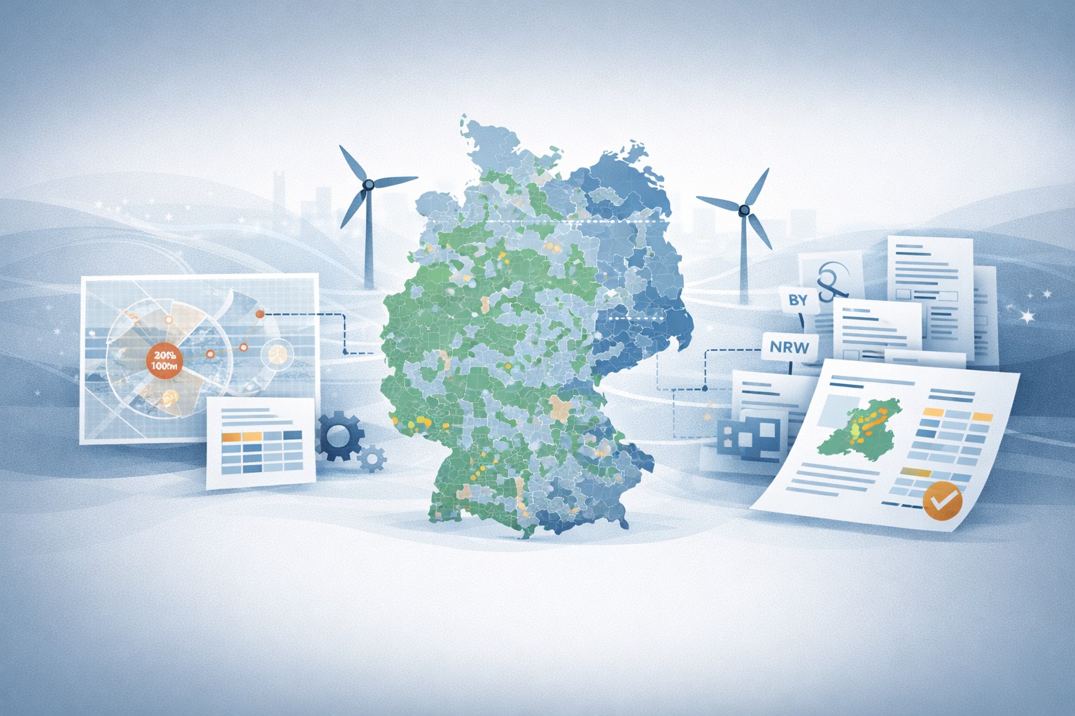 Für eine deutsche Behörde wurde eine bundesweite Analyse potenziell geeigneter Innenflächen für Kleinwindkraftanlagen durchgeführt – differenziert nach Bundesländern und jeweiligen regulatorischen Rahmenbedingungen. Grundlage bildeten Flächennutzungsdaten, gesetzliche Abstandsregelungen sowie technische Parameter typischer Kleinwindanlagen. Die Daten wurden harmonisiert, in eine reproduzierbare Analyse-Logik überführt und länderspezifische Regularien systematisch zusammengeführt. Ergebnis waren kartierte Flächenpotenziale, eine strukturierte Sammlung rechtlicher Vorgaben je Bundesland sowie ein Abschlussbericht mit klarer Handlungsempfehlung zur strategischen Weiterverfolgung der Entwicklung solcher Anlagen.