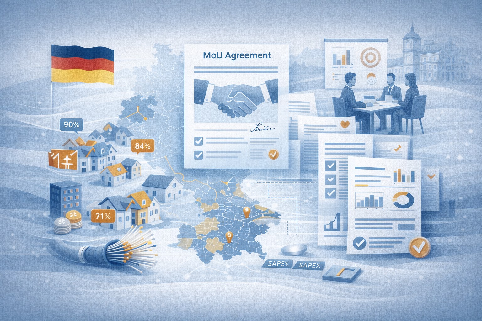 Begleitung eines deutschlandweiten Rollouts im Open-Access-Umfeld mit Fokus auf kommunale Memorandums of Understanding (MoU) als Startvoraussetzung. Dazu gehörten Ansprache und Betreuung von Kommunen, Unterstützung im Signing-Prozess bis zum technischen Kick-off sowie aktive Beteiligung in kommunalen Gremien. Ergänzend wurden Förder-/Abdeckungs-/Wettbewerbsinformationen geprüft, Clusterlogiken geschärft und strategische Schwachstellen identifiziert. Ergebnis: MoU-Abschlüsse im Umfang von >250k Homes Passed sowie regelmäßige Workshops zur Prozessverbesserung.